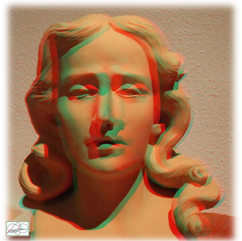 La mirada fija hacia el observador através de un velo. Lograda con un original y su espejo.